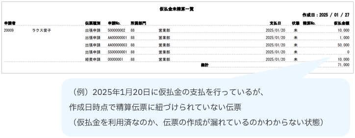 こんなときは、「仮払金未精算一覧表」がおすすめです。
