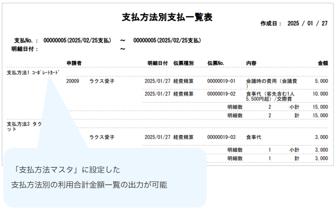 「支払方法別支払一覧表」とは、「支払方法マスタ」で設定した支払方法を選択した