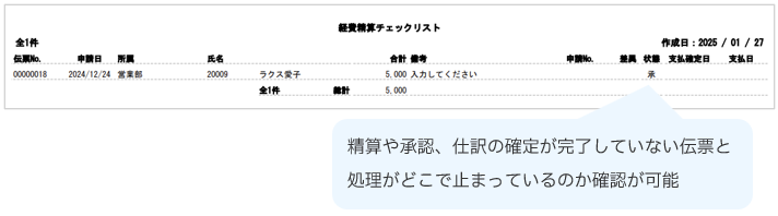 締日前などに精算や承認、仕訳の確定作業が完了していない伝票確認する場合に