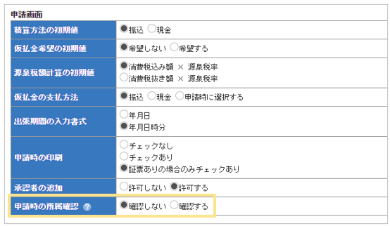 申請するたびに所属部門を意識して選択してもらうのはなかなか難しいものです。