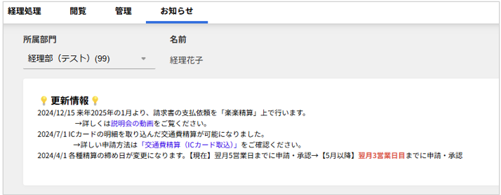 「楽楽精算」の設定変更をした時や、新しいルールを作成したので周知したい!