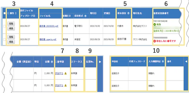 また、「取引日」を基準日とした「事業者登録番号」の有効性判定結果も確認できます。