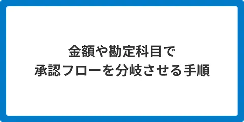 金額や勘定科目で承認フローを分岐させる手順 目次概要イメージ図事前準備設定手順 ▶条件承認フローマスタの設定概要金額や勘定科目によって承認フローを分岐させることができます。「管理」タブ >「承認フローマスタ」の「条件フロー」で設定することができます。「詳細設定」でのみ設定可能となります。「簡易設定」では設定することができません。本マニュ