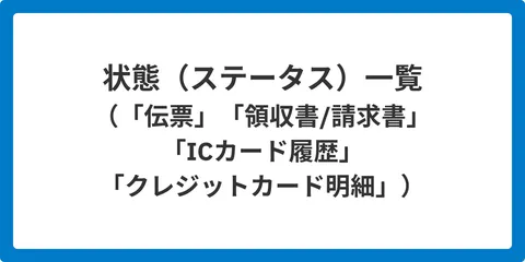 状態(ステータス)一覧(「伝票」「領収書/請求書」「ICカード履歴」「クレジットカード明細」)